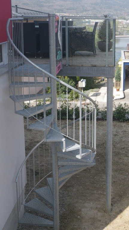 Spindeltreppe verzinkt und pulverbeschichtet Garten – Obergeschoss